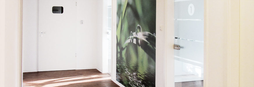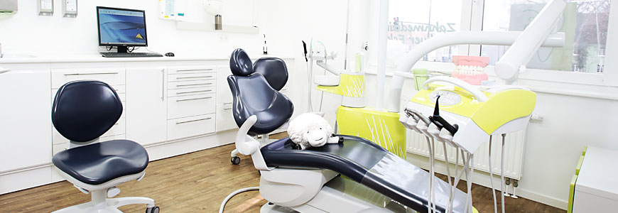 Wir ver­fügen ne­ben einem groß­zü­gi­gen Em­pfang und einem War­te­be­reich mit Wohl­fühl­atmos­phäre für große und kleine Patienten über 4 mo­der­ne Be­hand­lungs­zimmer. Unseren kleinen Patienten steht ein kind­ge­recht ein­ge­richte­tes Be­hand­lungs­zimmer – unser Kin­der­zimmer- zur Ver­fügung.